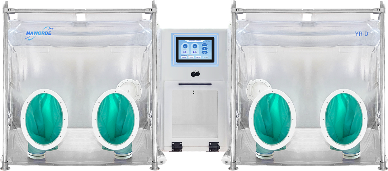 | YR-D Dual chamber anaerobic station with with oxygen and hydrogen monitoring system, one chamber capacity 546 l, interlock 27 l | |