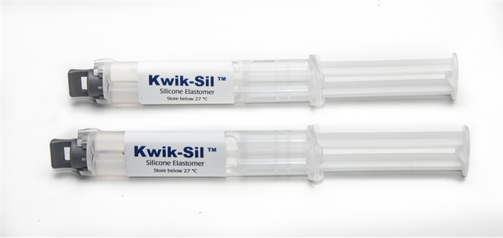 Kwik-Sil™ is a translucent, medium-viscosity silicone adhesive, developed for chronic peripheral nerve studies such as anterograde tracing with fluorescent indicators or electrode recording. Good adhesion and mechanical properties (tear strength and elongation) allow days of study without breaking of the bonding. Curing speed is very reproducible.